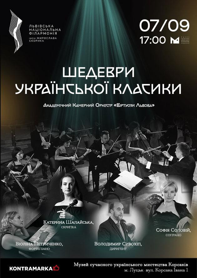 Добірна програма творів метрів української класичної музики від Академічного камерного оркестру «Віртуозів Львова» під керівництвом диригента Володимира Сивохіпа та солісток: сопрано Софії Соловій, скрипальки Катерини Шалайської й піаністки Віоліни Петриченко.