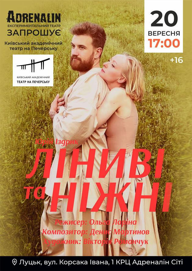 Київський академічний театр на Печерську у Луцьку в Експериментальному театрі «Адреналін» із виставою «Ліниві та ніжні»!