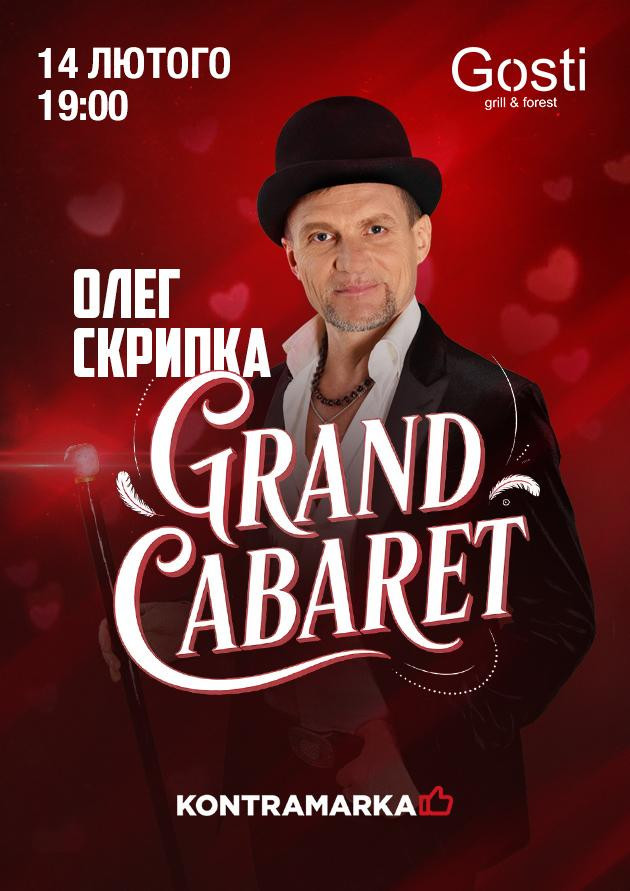 ОЛЕГ СКРИПКА GRAND CABARET у Луцьку до Дня закоханих ! 14 лютого на вас чекає вечір у якому поєднуються щирість українського серця, французька пристрасть і легкий присмак року.