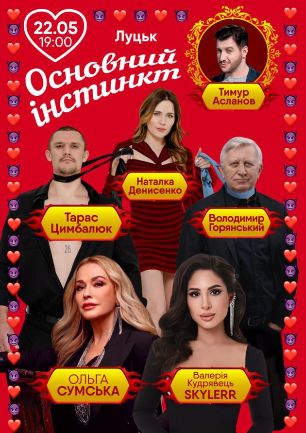 22.05 "ОСНОВНИЙ ІНСТИНКТ" у Луцьку! Зірковий склад акторів у неймовірній історії Кохання!