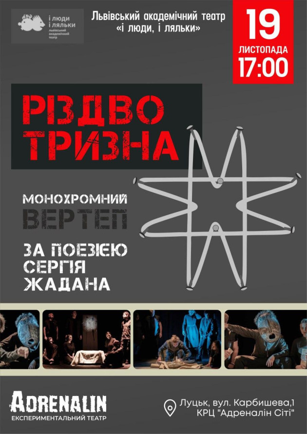 Львівський академічний театр «І люди, і ляльки»у Луцьку в Експериментальному театрі «Адреналін» із виставою Різдво. Тризна!